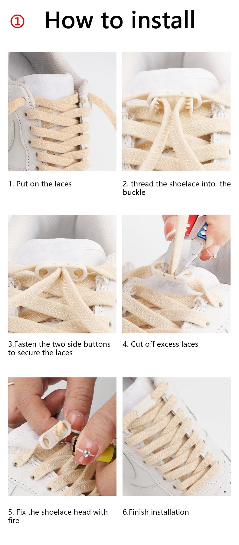 The pack includes all you need to attach your new laces to your shoes: 100cm of elastic rope, 1x buckle clips for tightening the laces, and 2x clips for the ends of your laces to finish the look and contain the end of the elastics, which also makes them easier to use too.