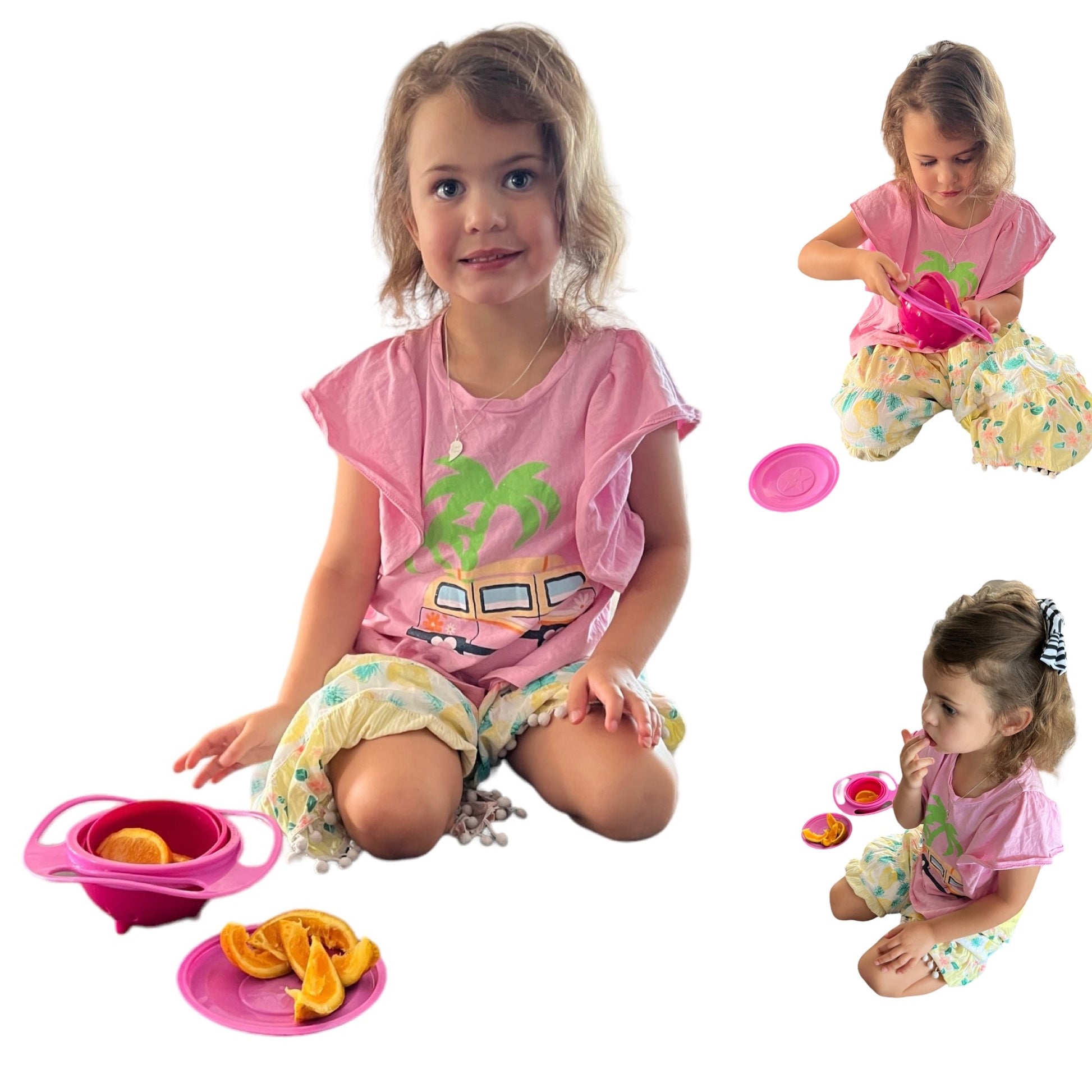 Our gyro bowls are a great first choice and option for your busy little ones and their favourite snacks. They are also a really great option for anyone that struggles with uncontrolled muscle movements, spasms or instability with walking around or holding a bowl up while moving without losing the contents of the bowl.