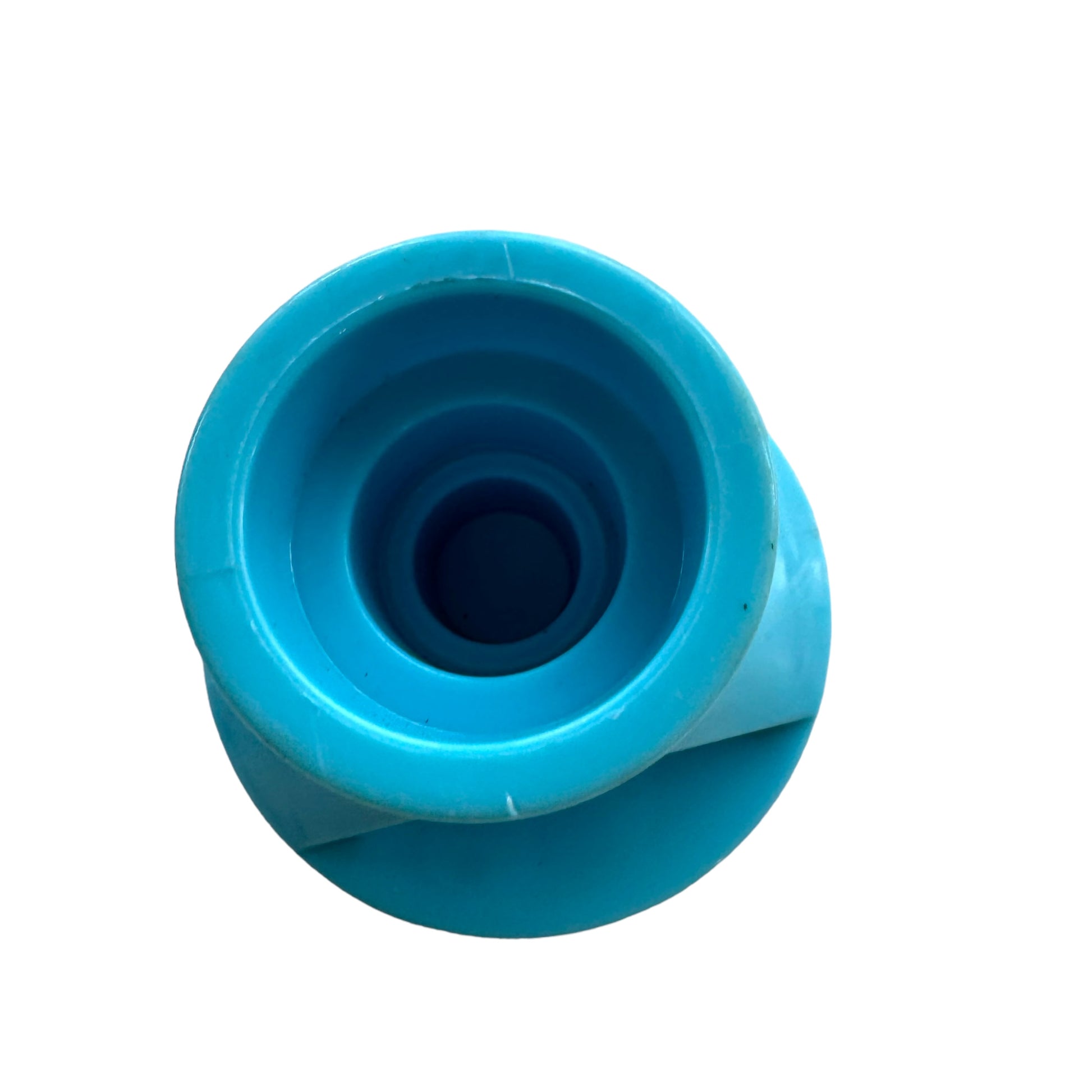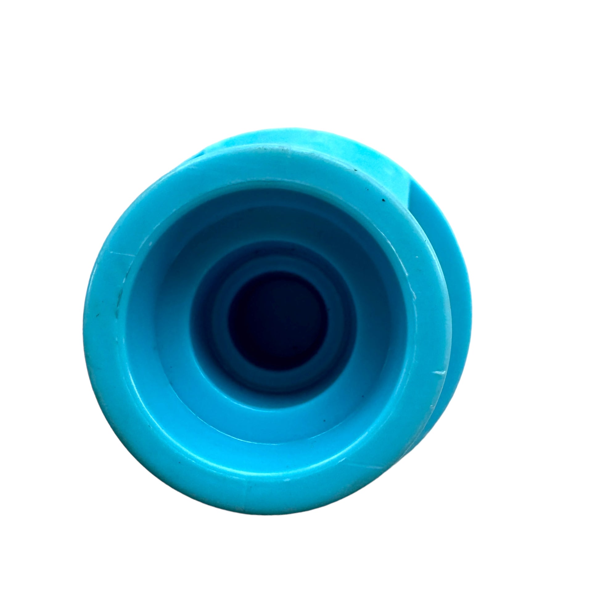 Image Description: A bright blue bottle stand with a curved, hourglass shape. The wide base provides stability, while the opening at the top fits standard bottle necks snugly, holding them securely upside down. Its smooth, simple design makes it both functional and easy to clean. The product is shown against a white background to highlight its sleek design and vibrant colour.