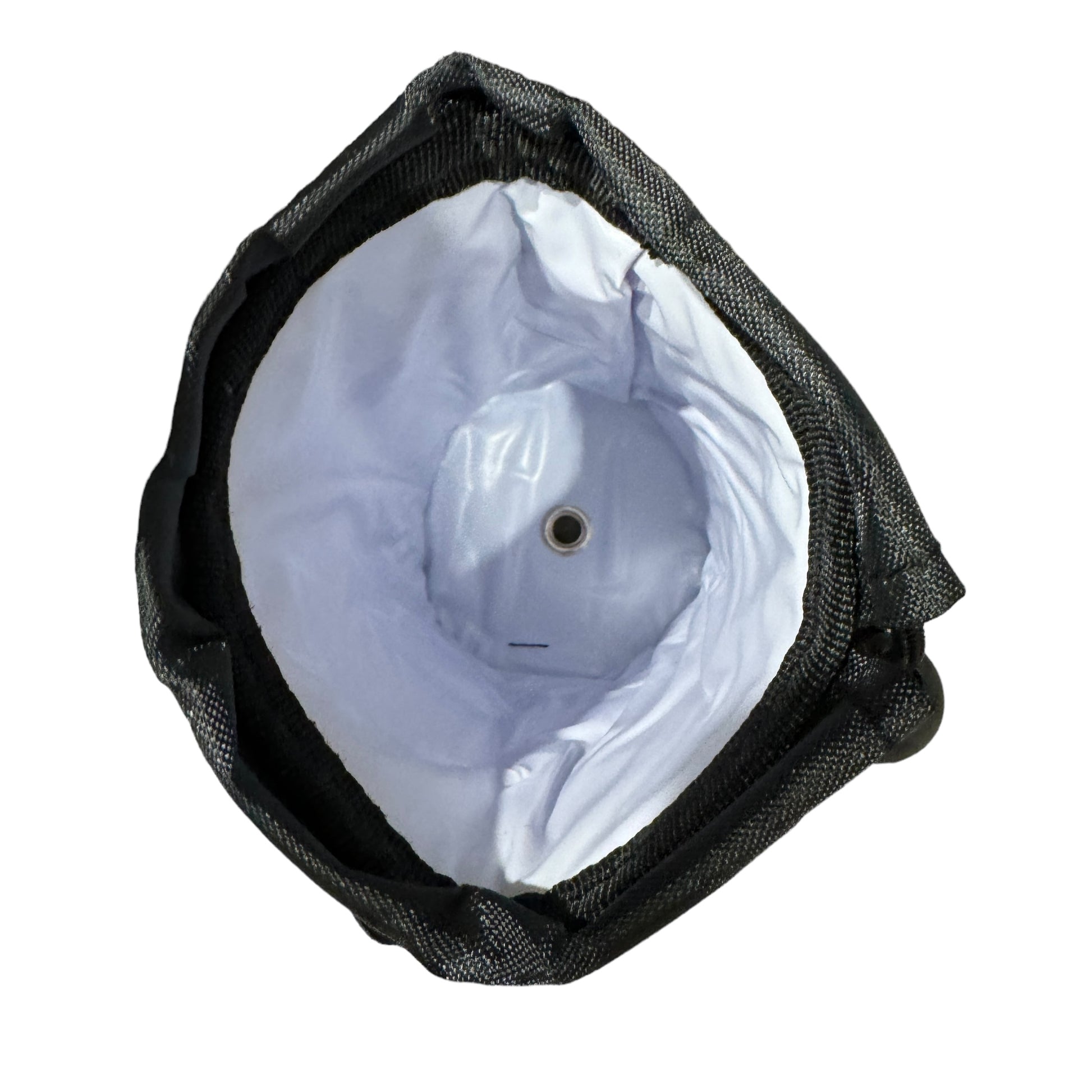 A collapsible canvas cup holder lined with PVC. It has sewn velcro closures to quickly and easily strap on to any parallel bar or beam on your mobility device, freeing your arms up for other more tasks in the day.