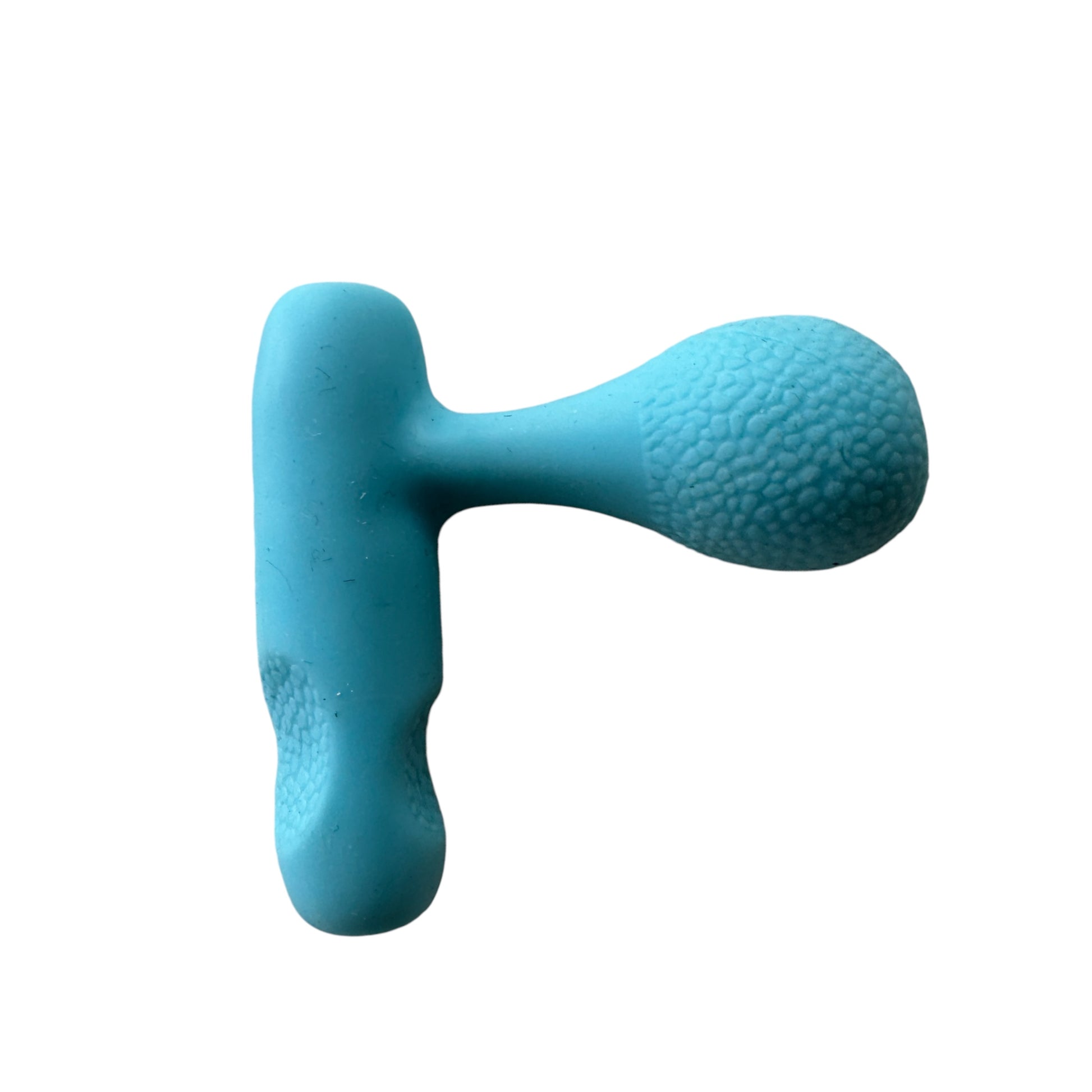 Image Description: A bright blue pencil grip holder with a unique “T” shape. The short, textured handle provides a firm and comfortable grip for the thumb, while the rounded end supports the fingers, creating an ergonomic and tactile experience. The smooth, compact design makes it suitable for various writing tools. The grip is displayed against a white background to showcase its functional and modern design.