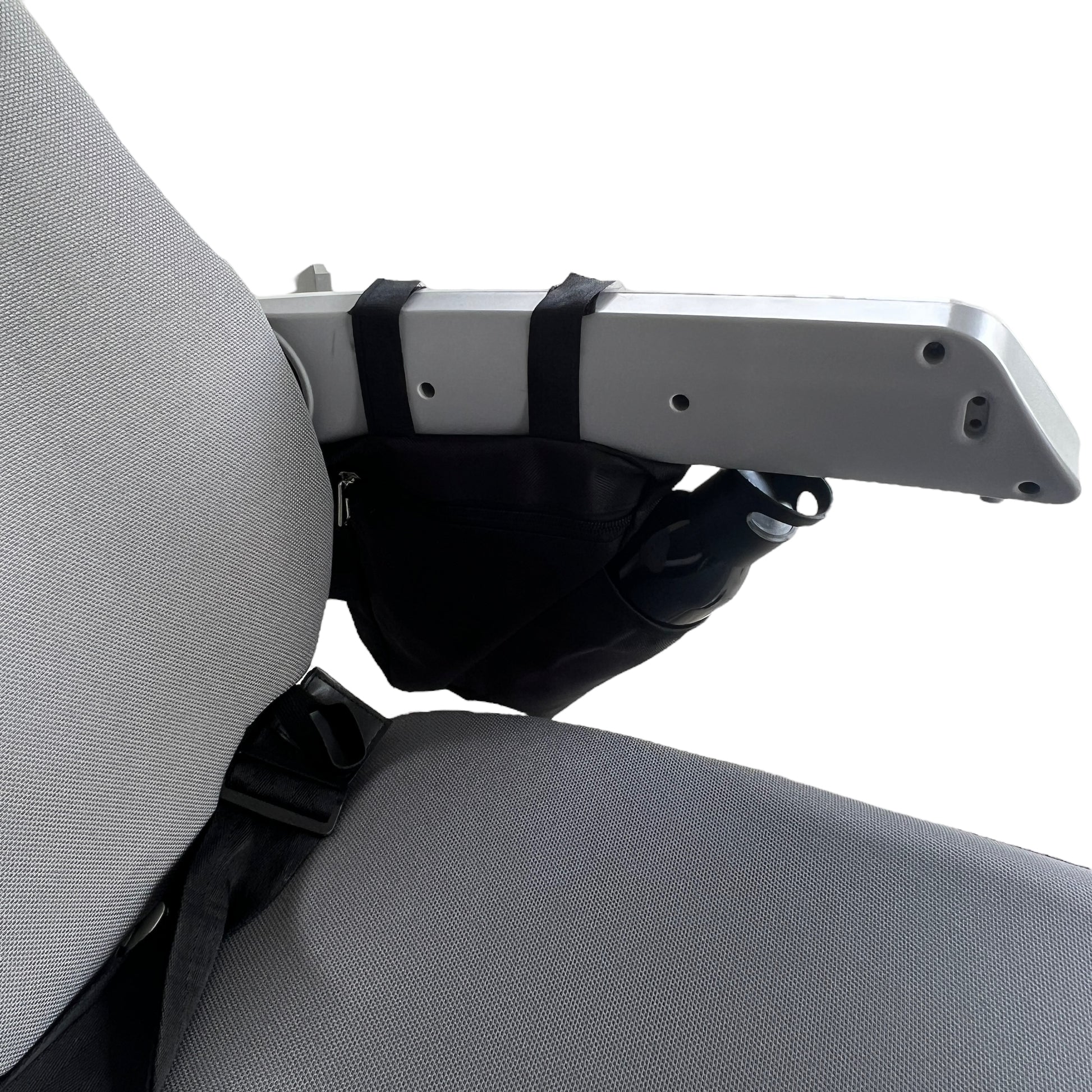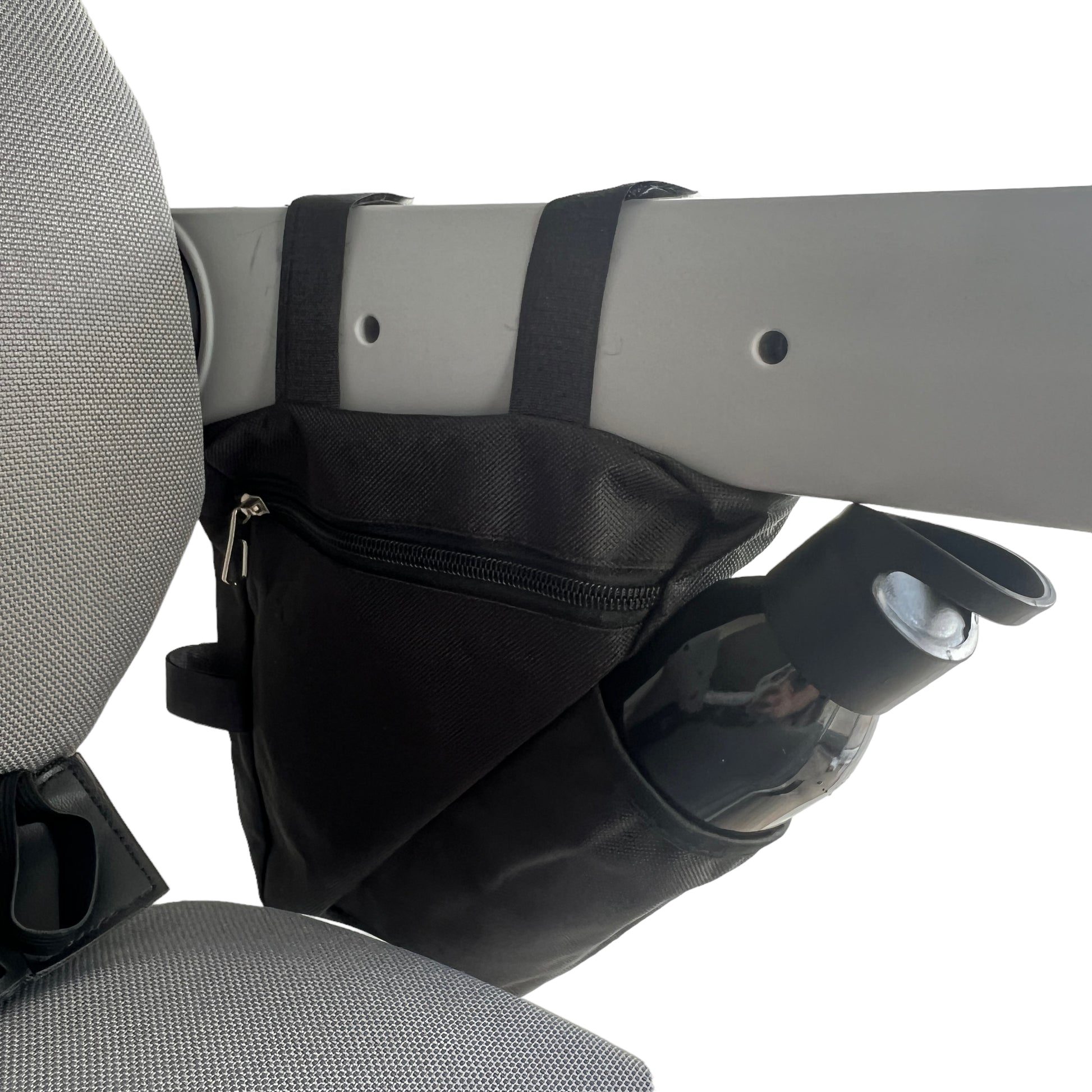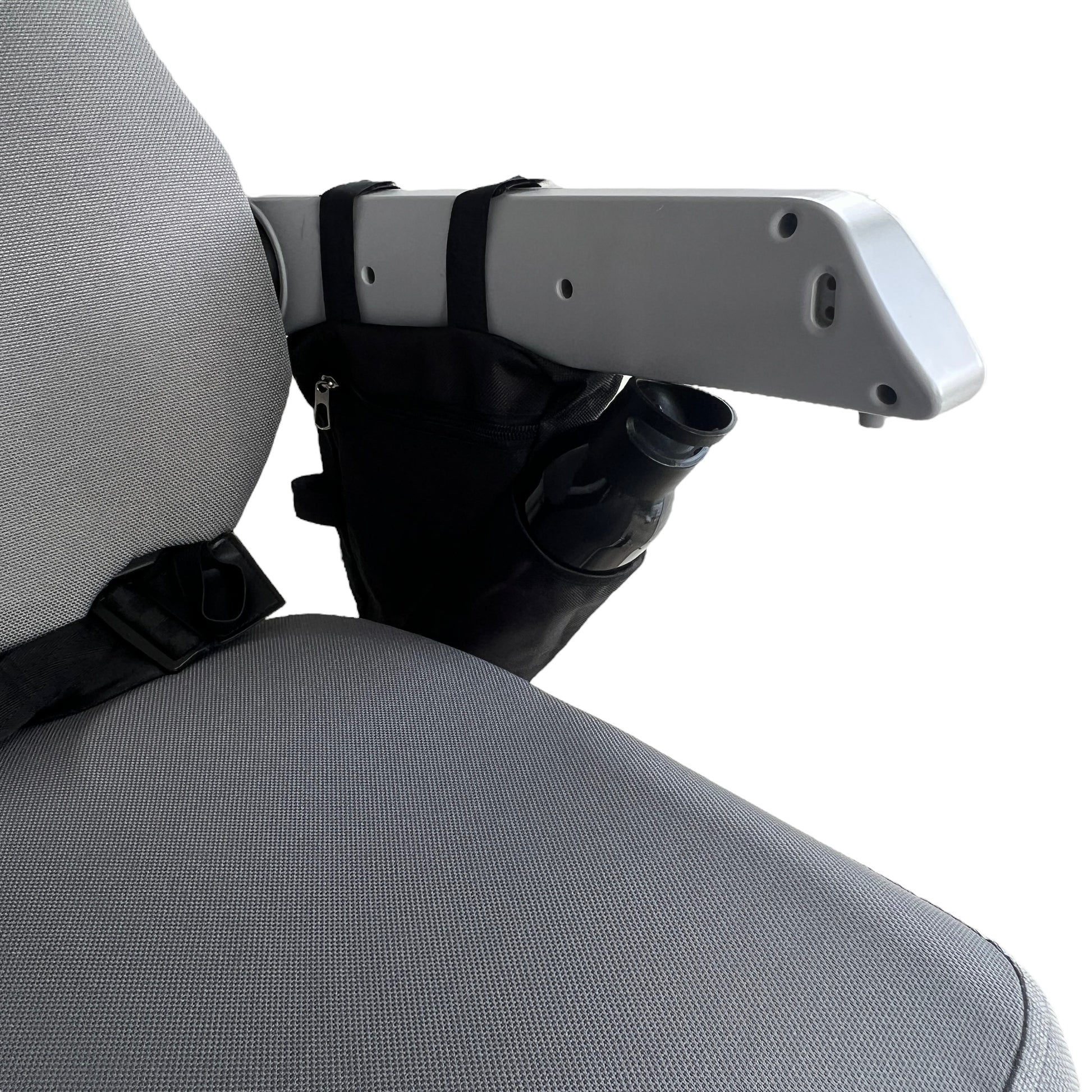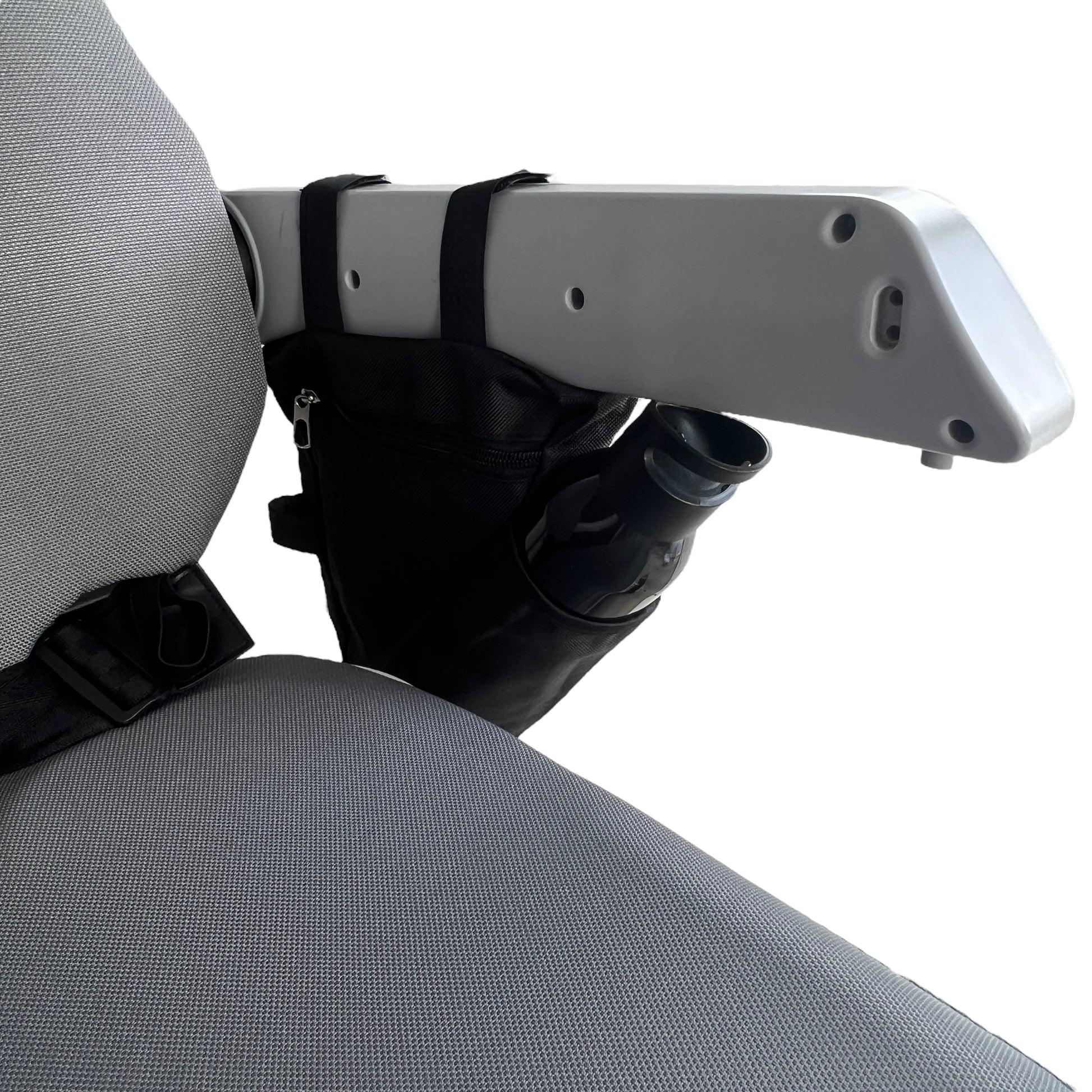 A compact and discrete corner bag for your mobility and storage needs that is weather and water resistant and once strapped into place with its velcro straps, can stay happily on your mobility device without having to be removed again. It has easy zip opening pull tabs to make accessing it as easy as possible too. With its water bottle drink holder makes it easy and convenient for carrying your bottle around with you.