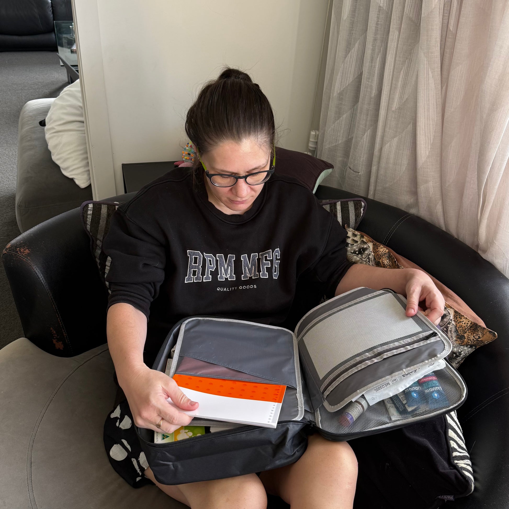 - Having separate bags allows everything to stay organised, easy to grab, and clearly separated depending on what you need.