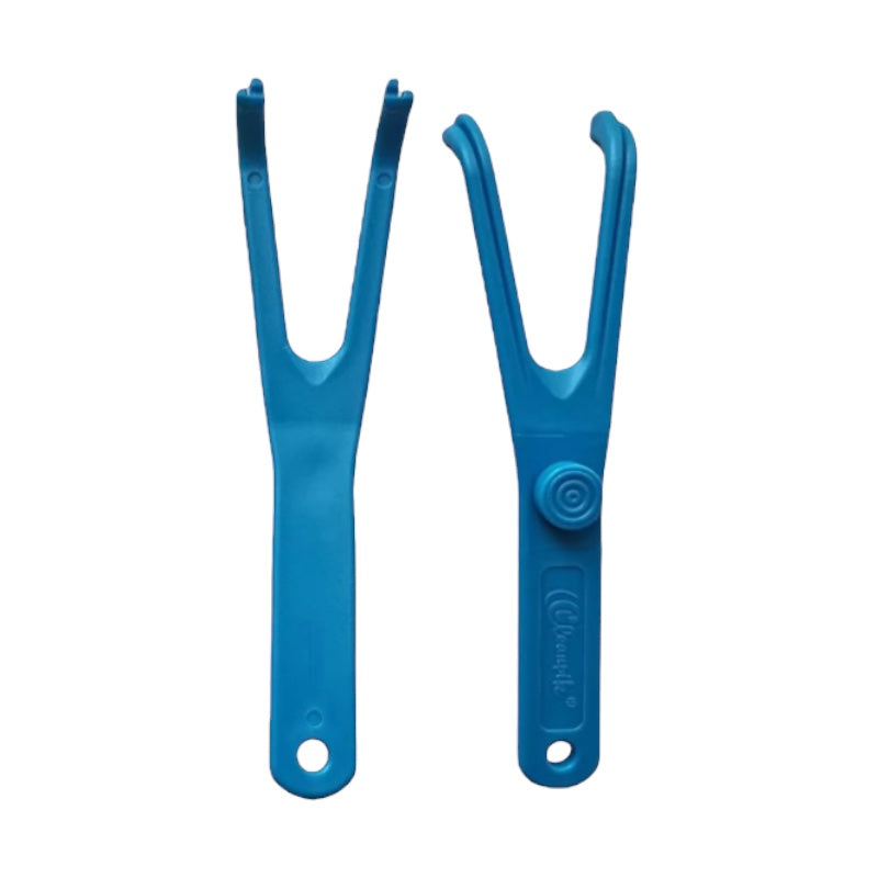How to use: You will need your flossing aid, and dental floss. Draw a length of dental floss out and wrap the end of it a few times around the centre disc. Bring the dental floss up and over the end of the dental floss aid, across the top from one side to the other and back down to the dial again. Wrap the floss around the dial a few times again to keep it tight and taut across the top of the flosser. Floss your teeth using the dental aid. Once you have finished, you can either draw the floss through or remove it from the dental floss aid until you’re ready to floss next time.