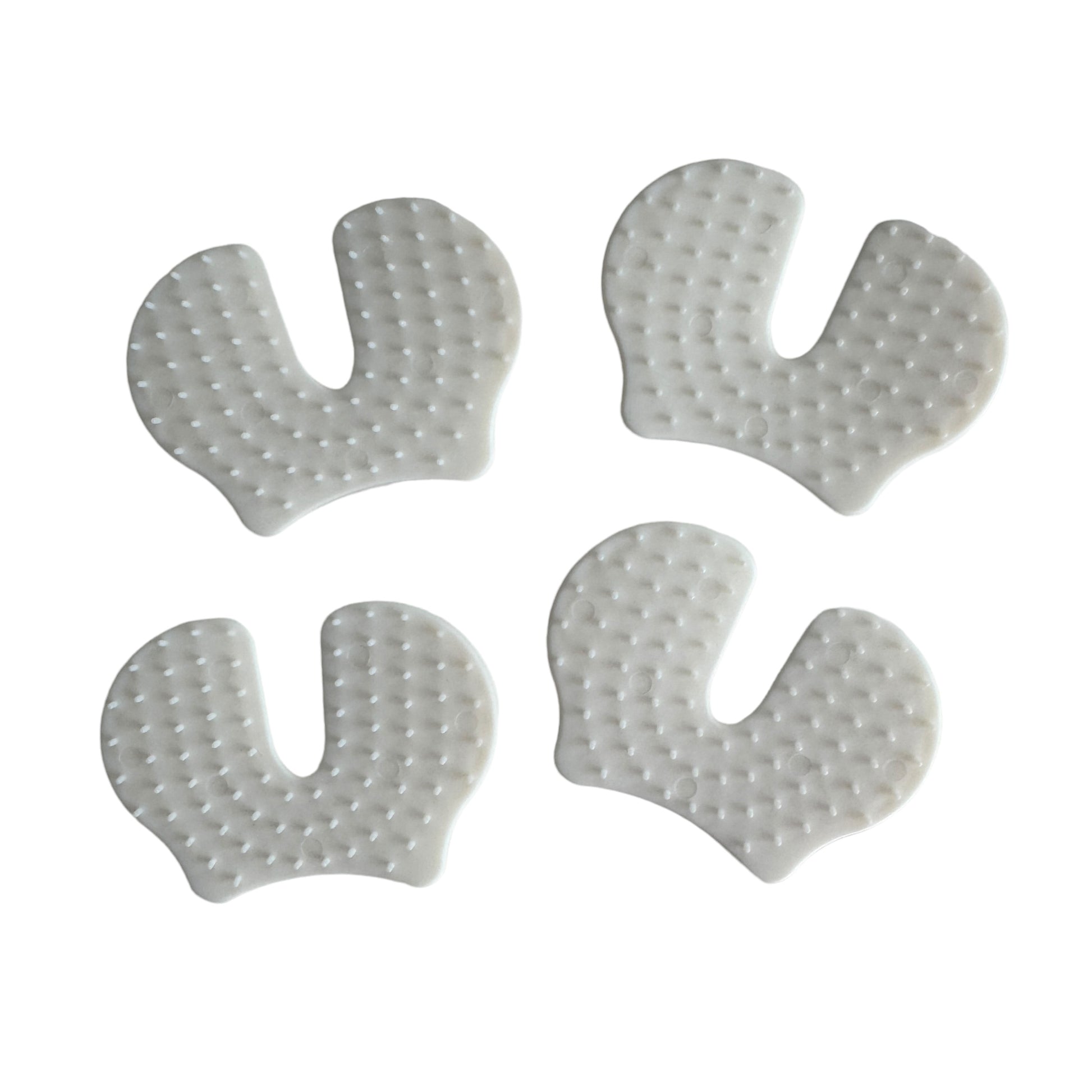 Image Description: A compact U-shaped injection helper pad with a small opening for the needle and textured grips on one side. The curved shape fits comfortably in the hand and is designed to rest smoothly against the skin during injections.