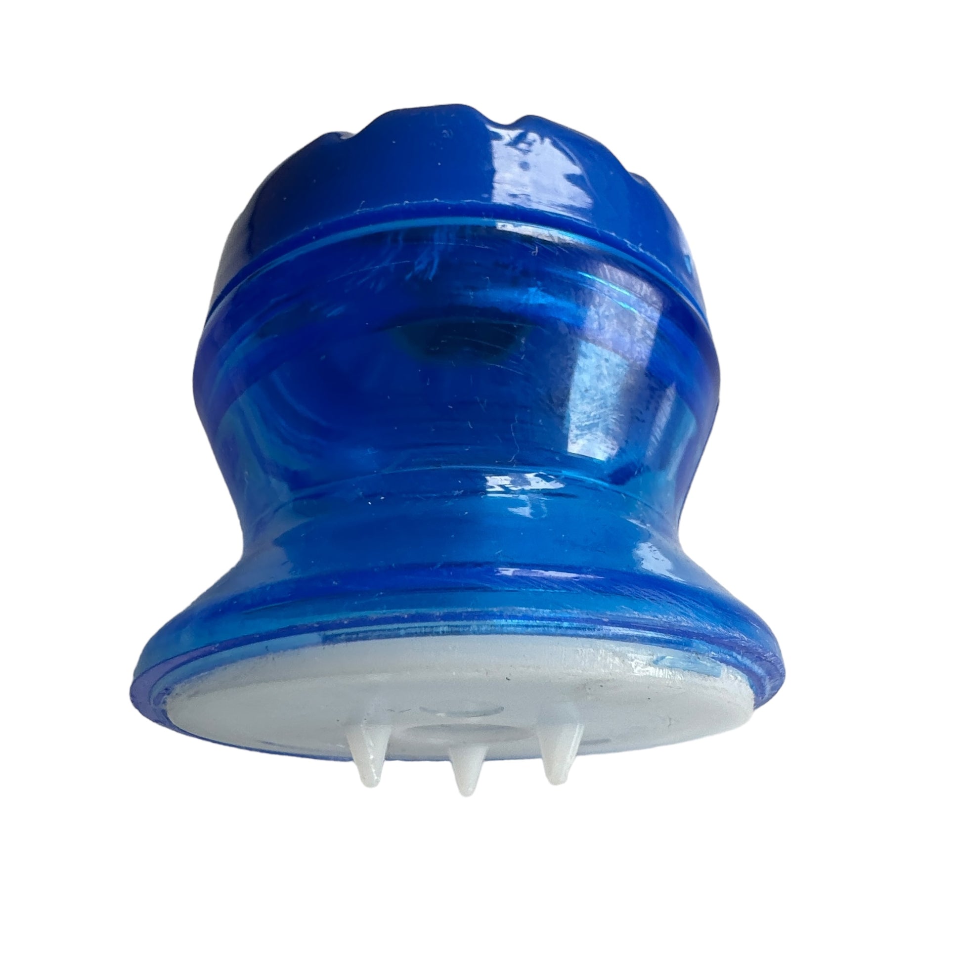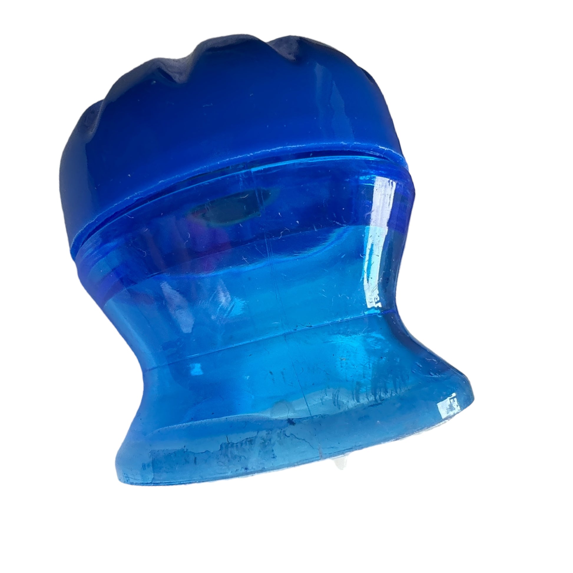 Image Description: An easy grip handle that has been fashioned with 3 small spikes on the bottom, that allows you to hold the handle, then spike and twist the handle to open an individual blister for the blister packed medications that the pharmacy makes.