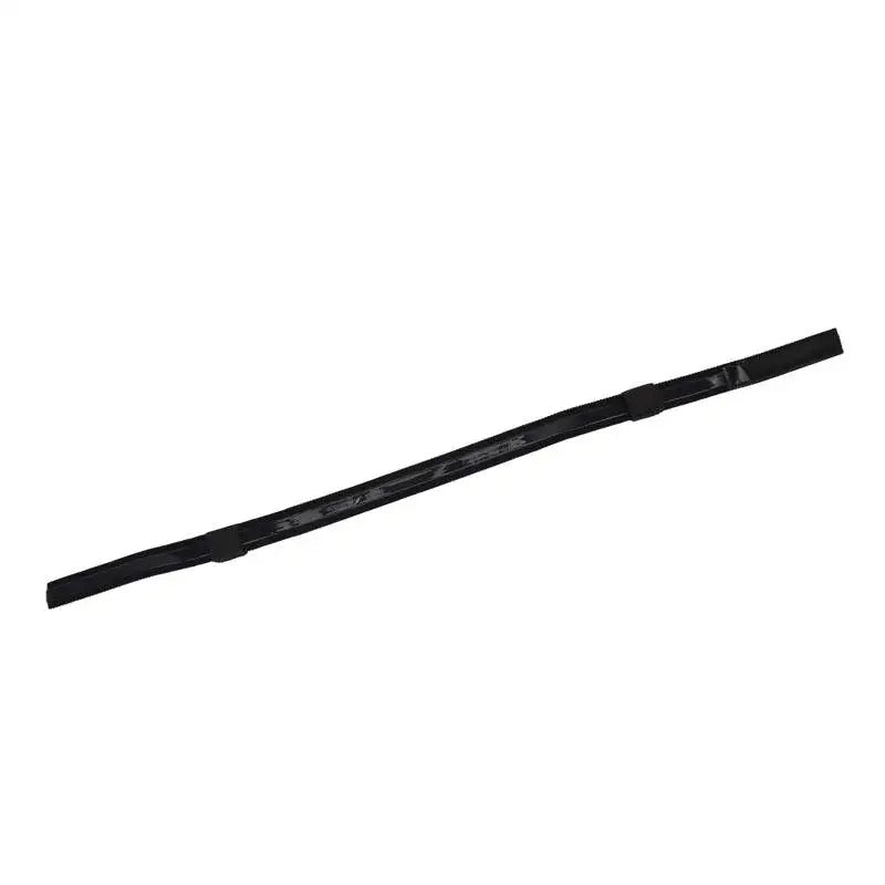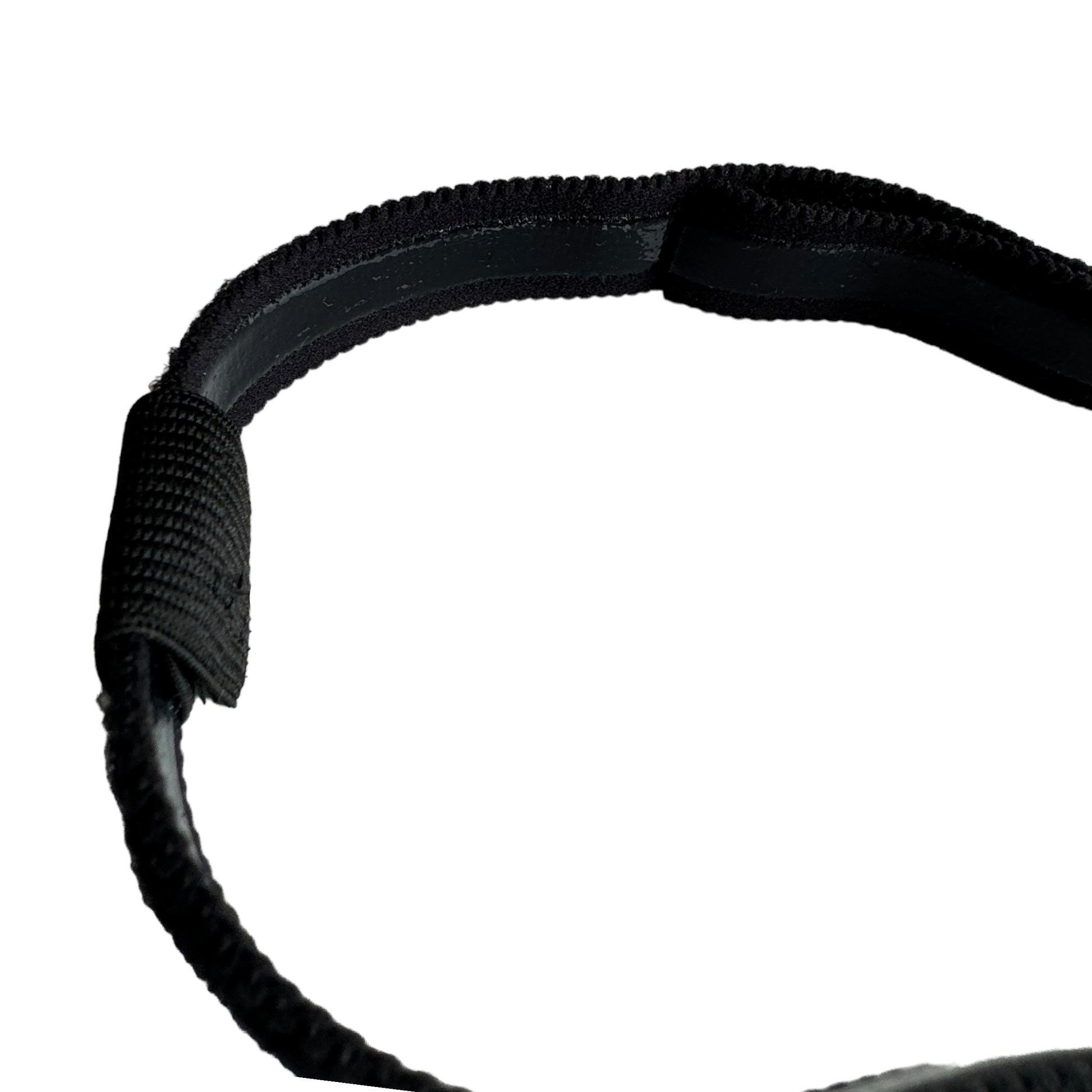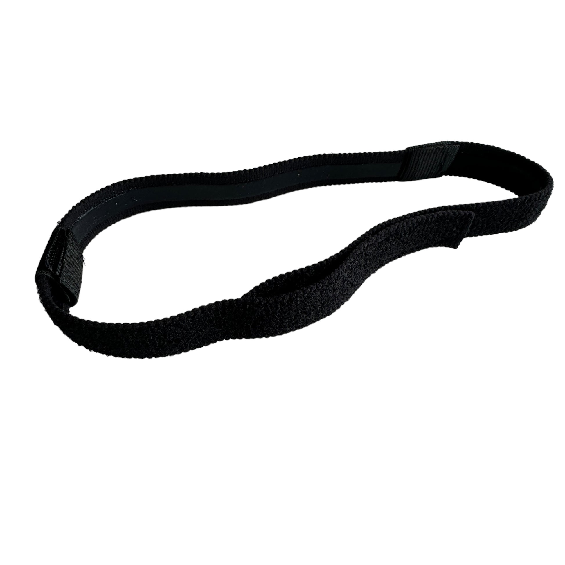 Image Description: Black headband with silicone grip to help keep the headband in place. On either side of the headband is loops to thread the oxygen tubes through. The headband is completely adjustable size.