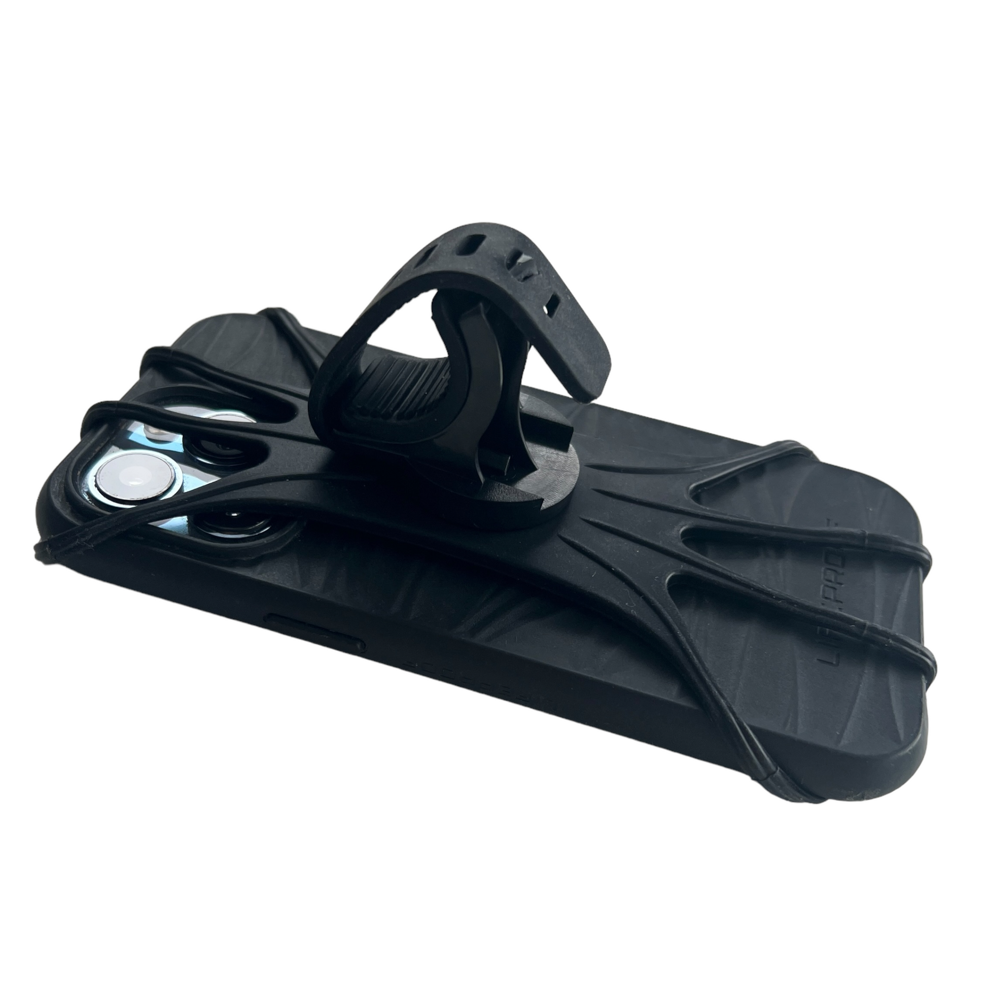 This phone holder will allow you to attach your phone to any pole or circular device via an adjustable elastic rubber strap. The phone holder can easily rotate 360° to adjust to the specific angle that works best for you.