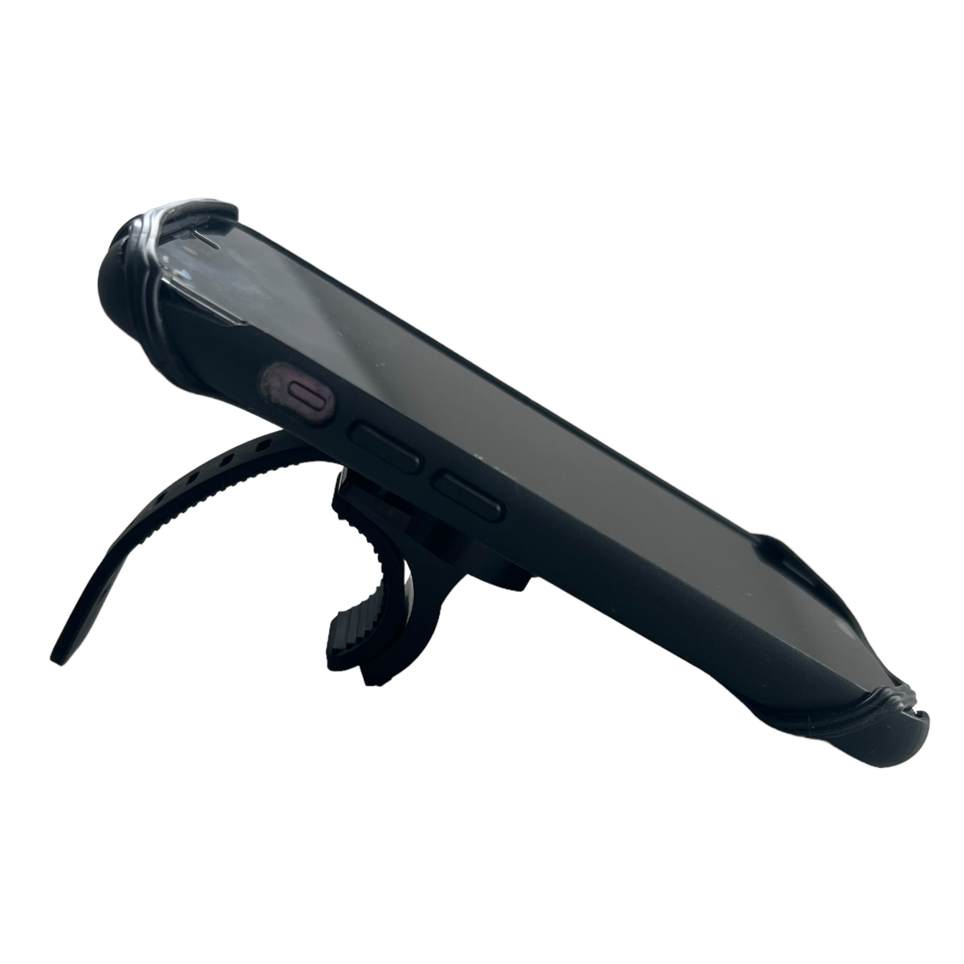 Attach the phone holder to your bike, a scooter arm, or onto your child’s push pram. Attach it to your video stand to help capture your video from another angle.  You can attach it to a music stand for speaking or presenting, or to to any handlebar. You can even attach it an IV pole, so that you can watch videos or talk on the phone as you go about managing care.