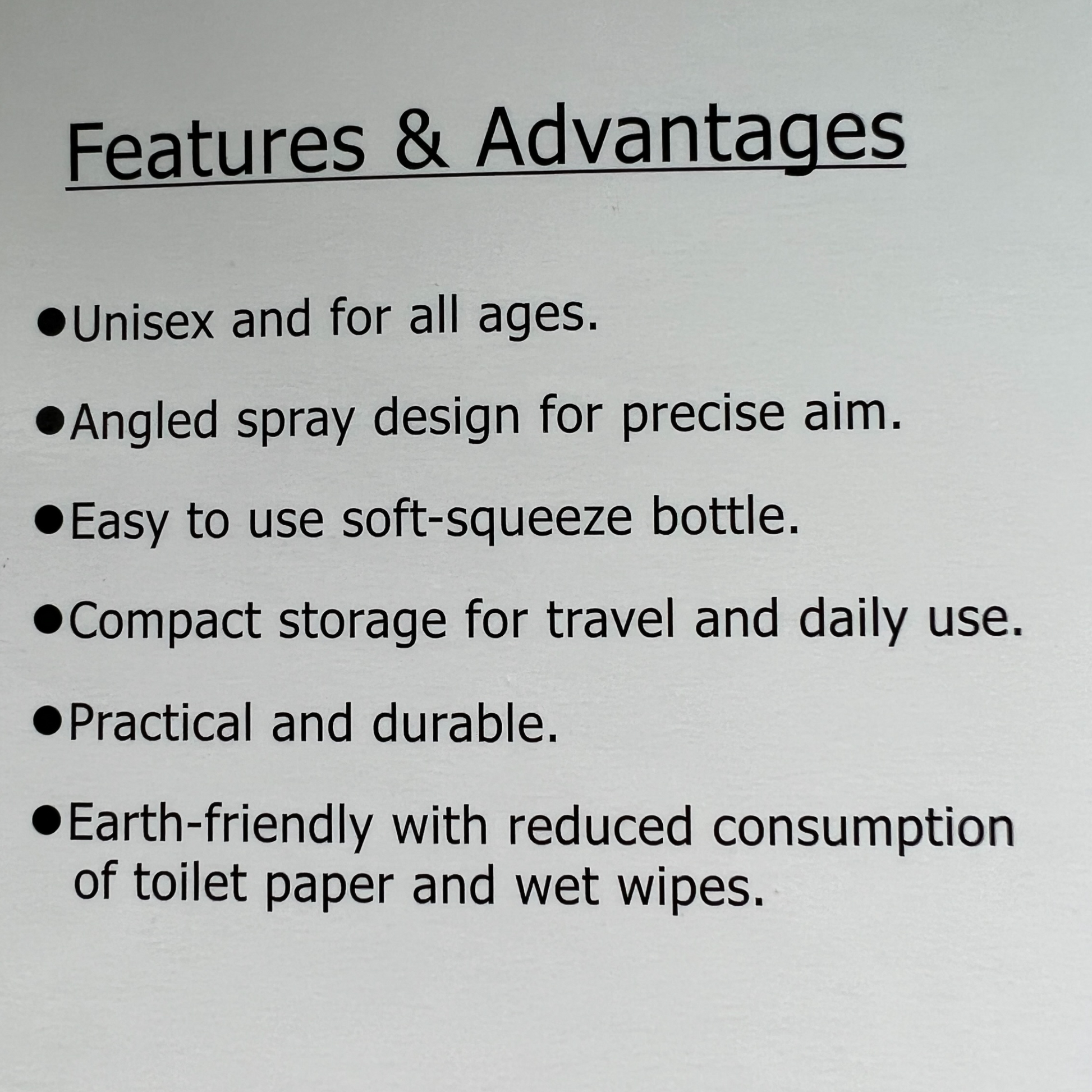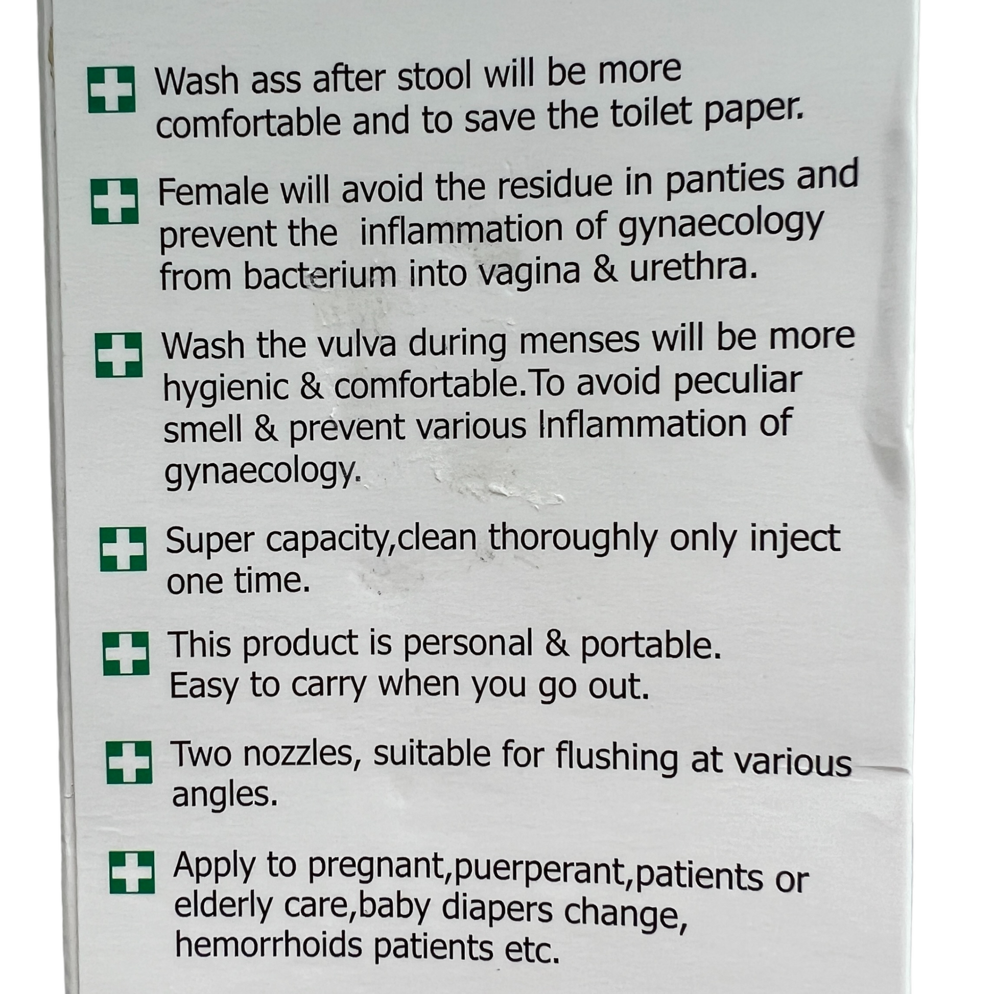 The 500ml portable bidet is perfect for travel. The bidet allows you to clean yourself with water, and is a much more gentle solution to using toilet paper. The bidet is especially useful for cleaning up after changing your baby of toddlers nappies. They are also an effective solution for those who are in bed for significant periods of time, and those who need to use bed pans, as well as those who want an easy and quick way to freshen up that area without a shower.