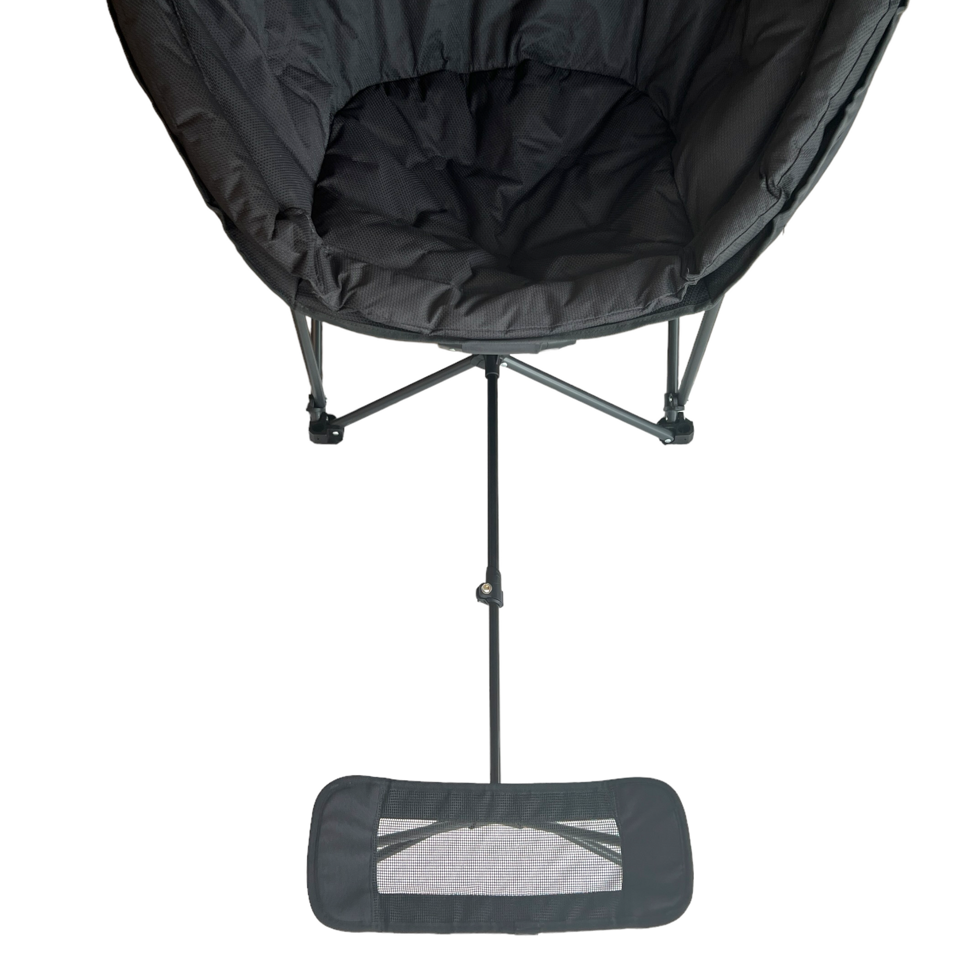 This foot rest for moon chairs is easily foldable and portable. It comes in its own wee bag that can be stored easily with your cover for your camping chair so that it’s always with you when you take your camping chair away with you! It clips into place making it secure to use, and it won’t tip on its own. It’s adjustable to the length you want it.