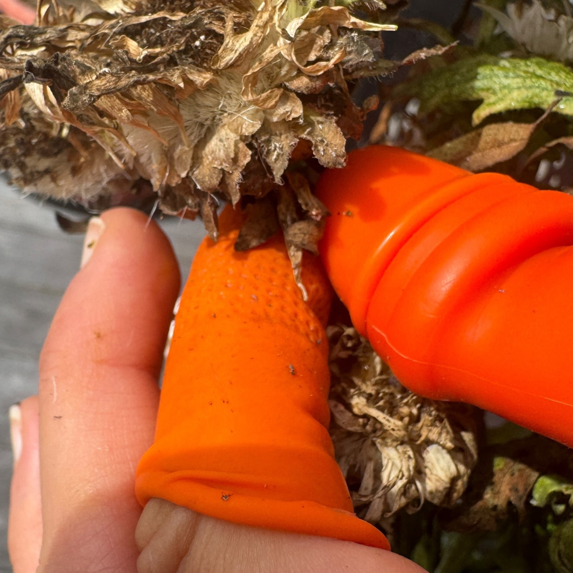 The silicone thumb knife is designed for quick, safe, and super satisfying harvesting, trimming, and prep work. The soft silicone stays in place without slipping or digging into your nails. Once they’re on, they free up your hands so you can steady yourself, carry a basket, use a mobility aid or multitask more easily.