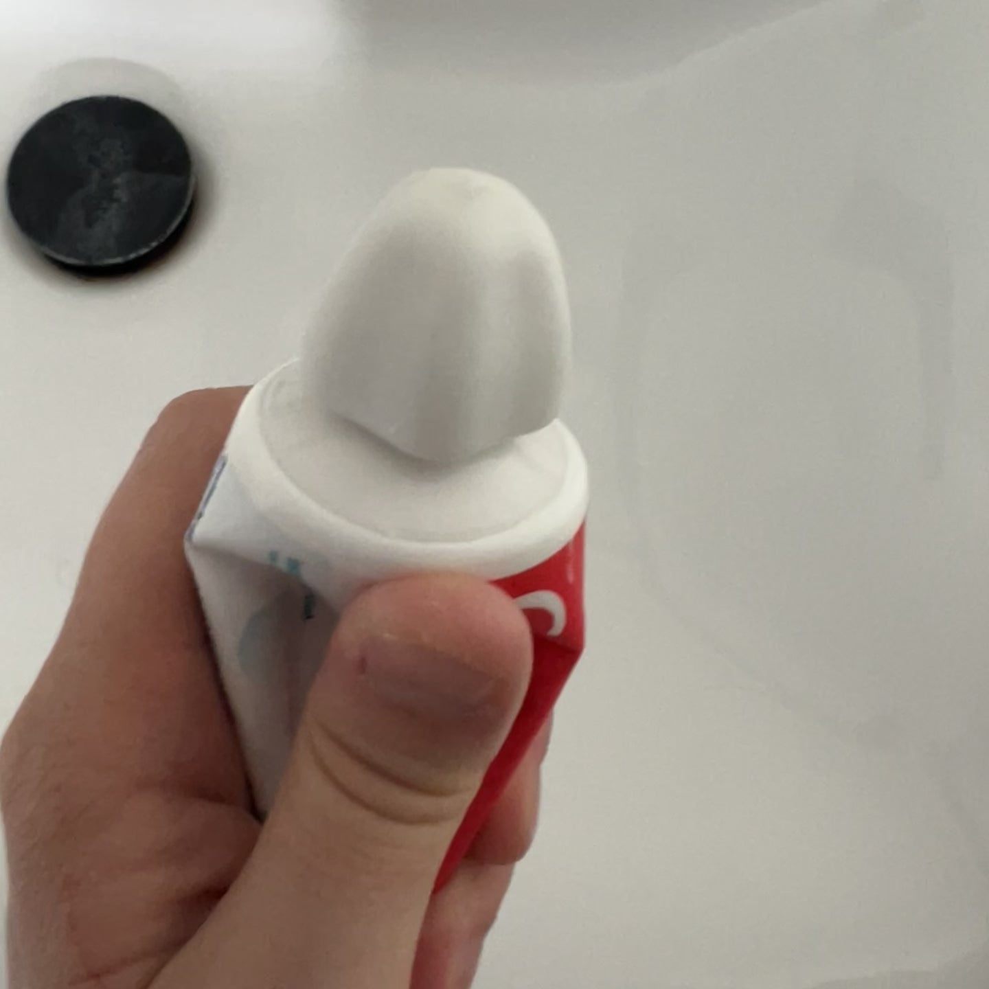 ➡️ If the toothpaste hasn’t been used in a while and has dried in the tip, run warm water over the cap or gently squeeze the sides of the tip to help clear any dried toothpaste and get things flowing again.