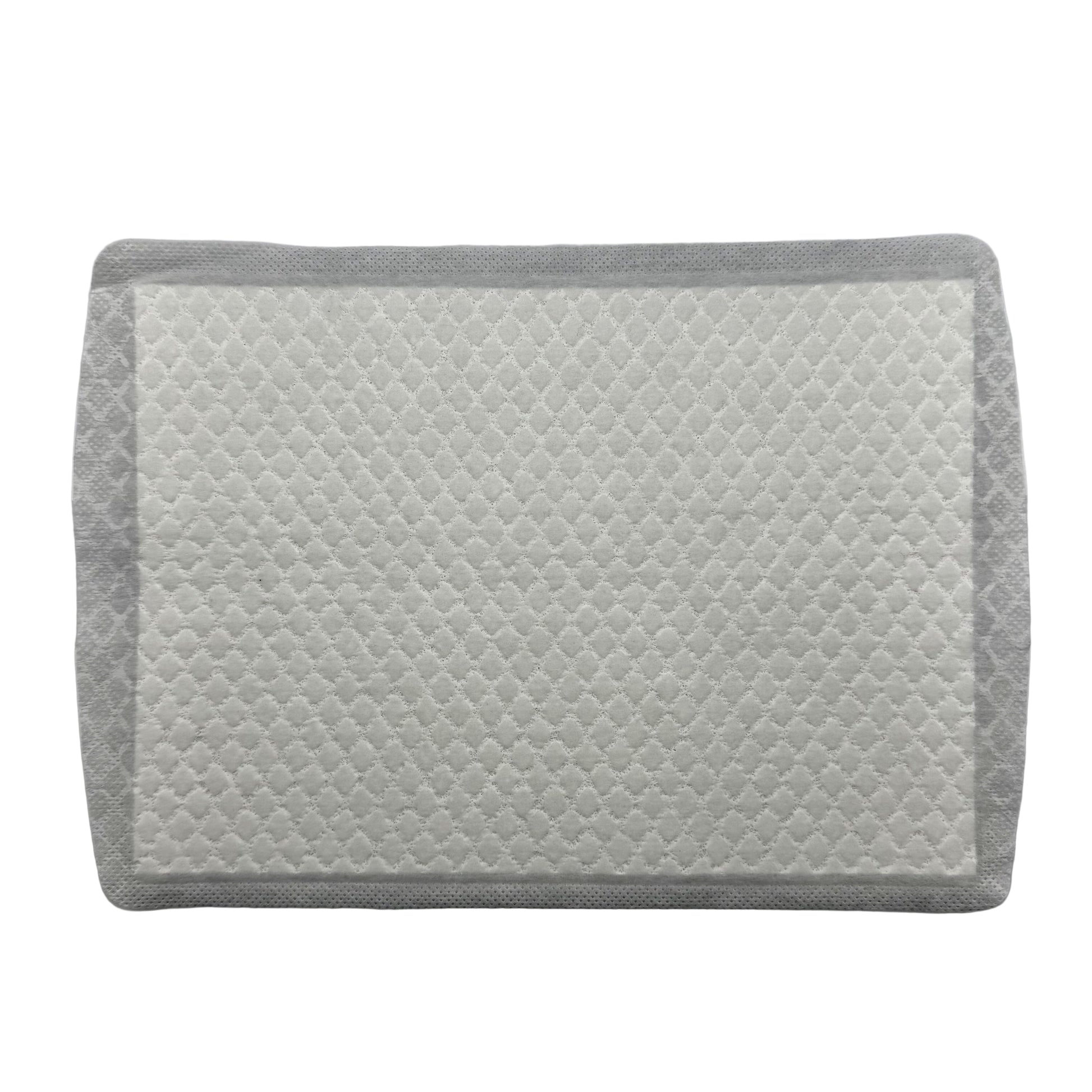 Image Description: A rectangular absorbent pad with a quilted white surface and a soft grey border. The images show the pad being placed inside clothing on both the front and back, and also shown as a set of multiple pads stacked together.