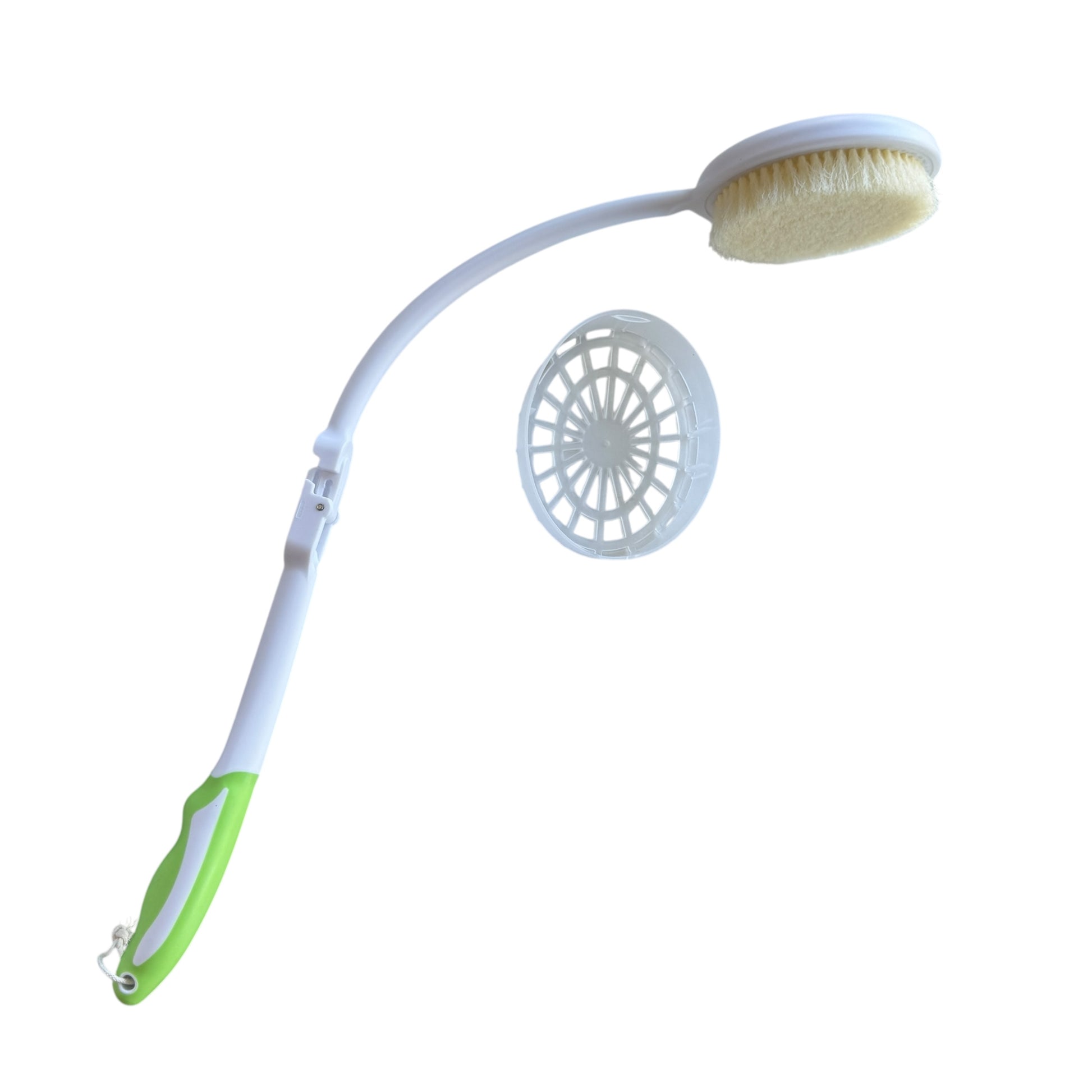 This long-handled back brush is designed to make washing and drying more accessible for anyone who finds reaching tricky. whether that’s due to disability, injury, chronic pain, fatigue, or simply needing a little extra support