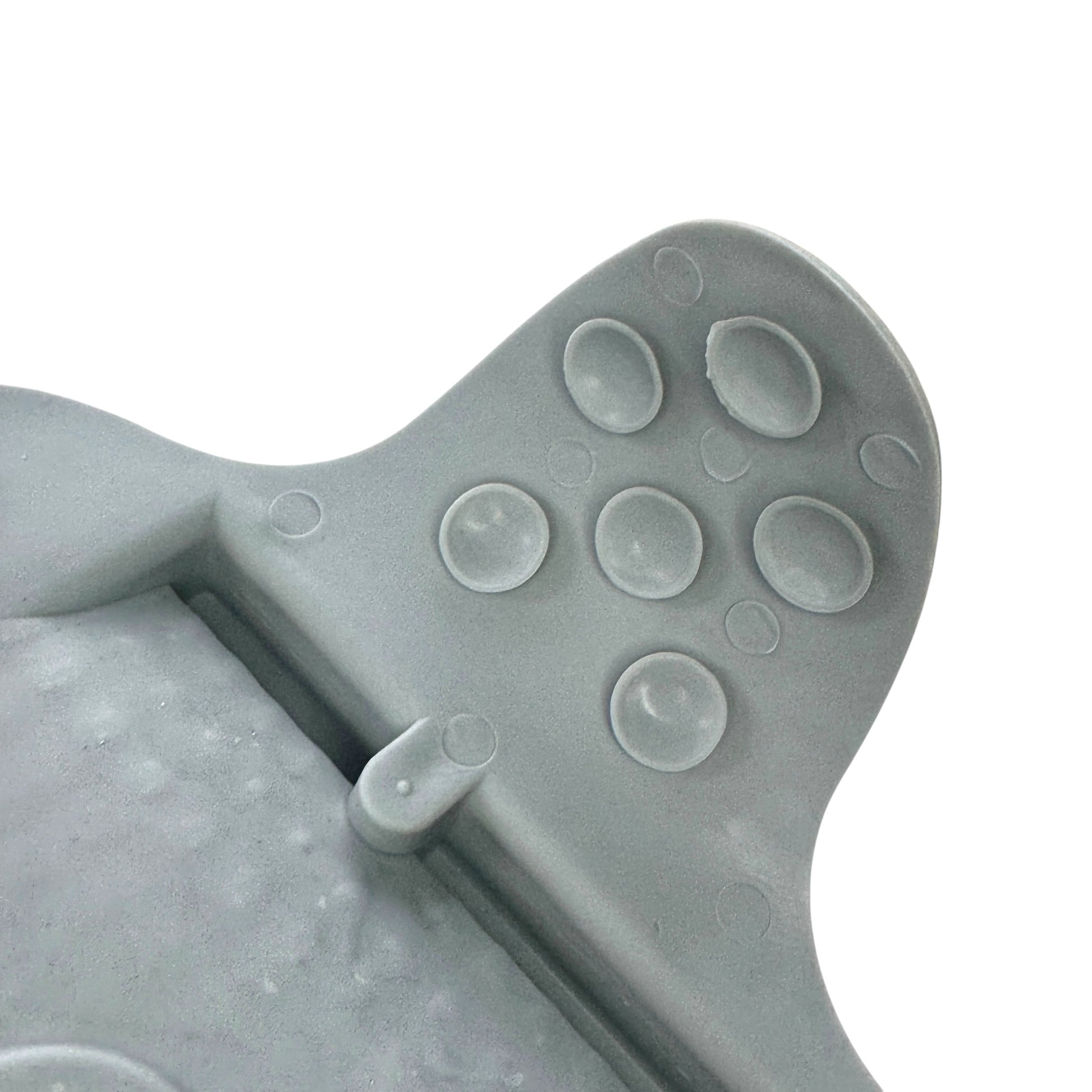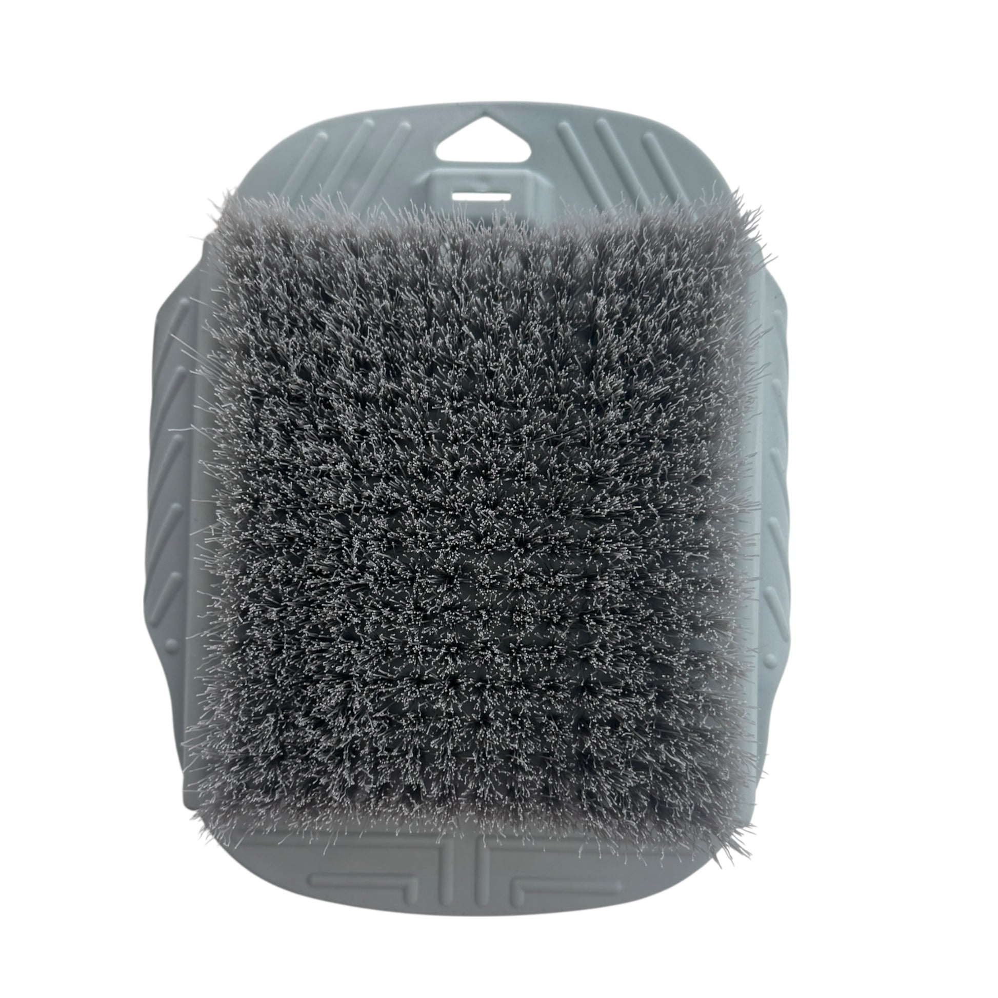 Image Description: A soft-bristled foot scrubbing brush with flexible suction wings on both sides that help it stick securely to the shower or bath floor. The brush surface is covered with fine cleaning bristles designed for washing and exfoliating feet hands-free. Available in blue, green, and grey, it is a stable, accessible foot-care tool for everyday use.