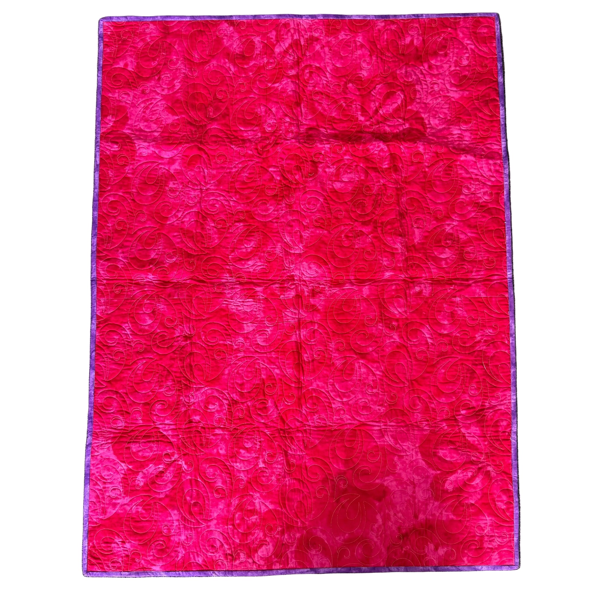 Turn it over and you’re met with a bold, deep pink backing, beautifully quilted with swirling stitching that adds texture and warmth. The contrast between the front and back gives this quilt a striking reversible look, making it just as special whether it’s folded back, fully spread out, or draped over a chair.