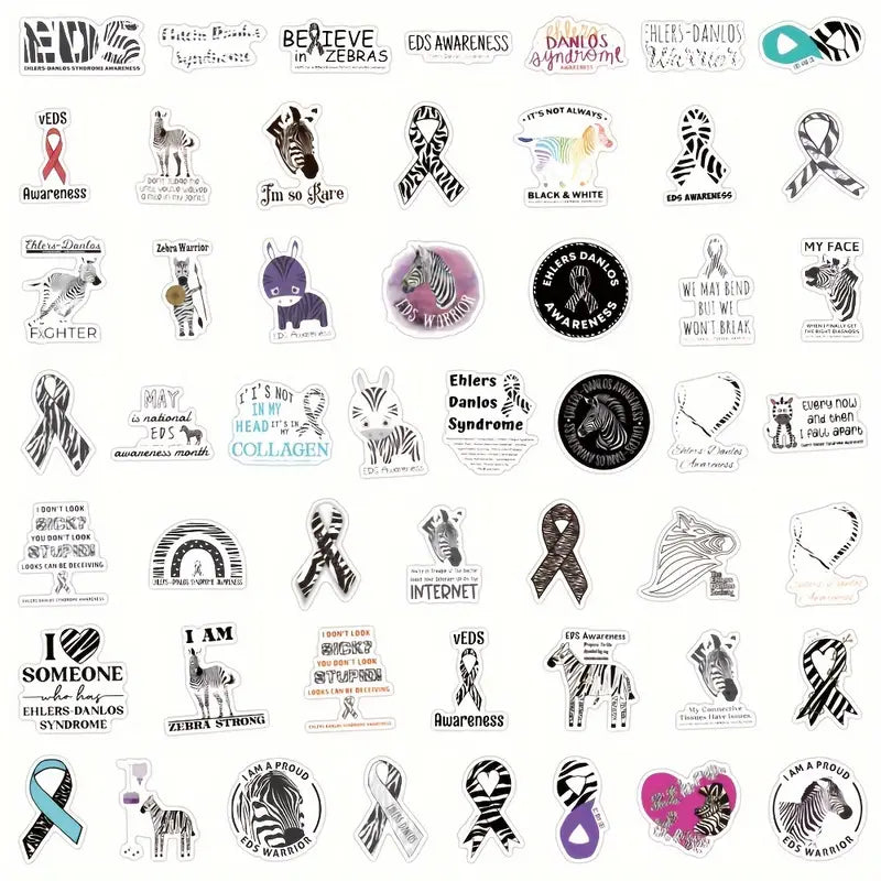 Collect your EDS themed stickers here! Perfect for decorating anything that you think needs some extra ‘pizzazz’ — from your braces to your vehicle, your laptop to your notebook, or wheelchair. These can be placed on a drink bottle, lunchbox and other items.