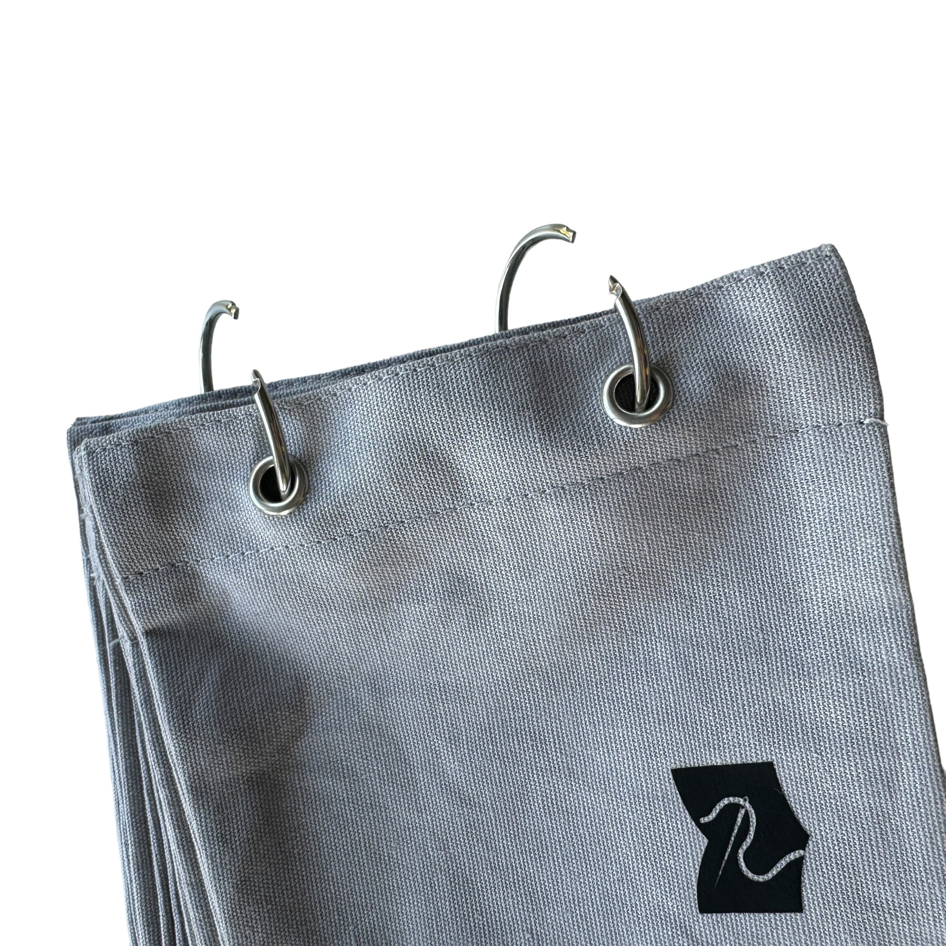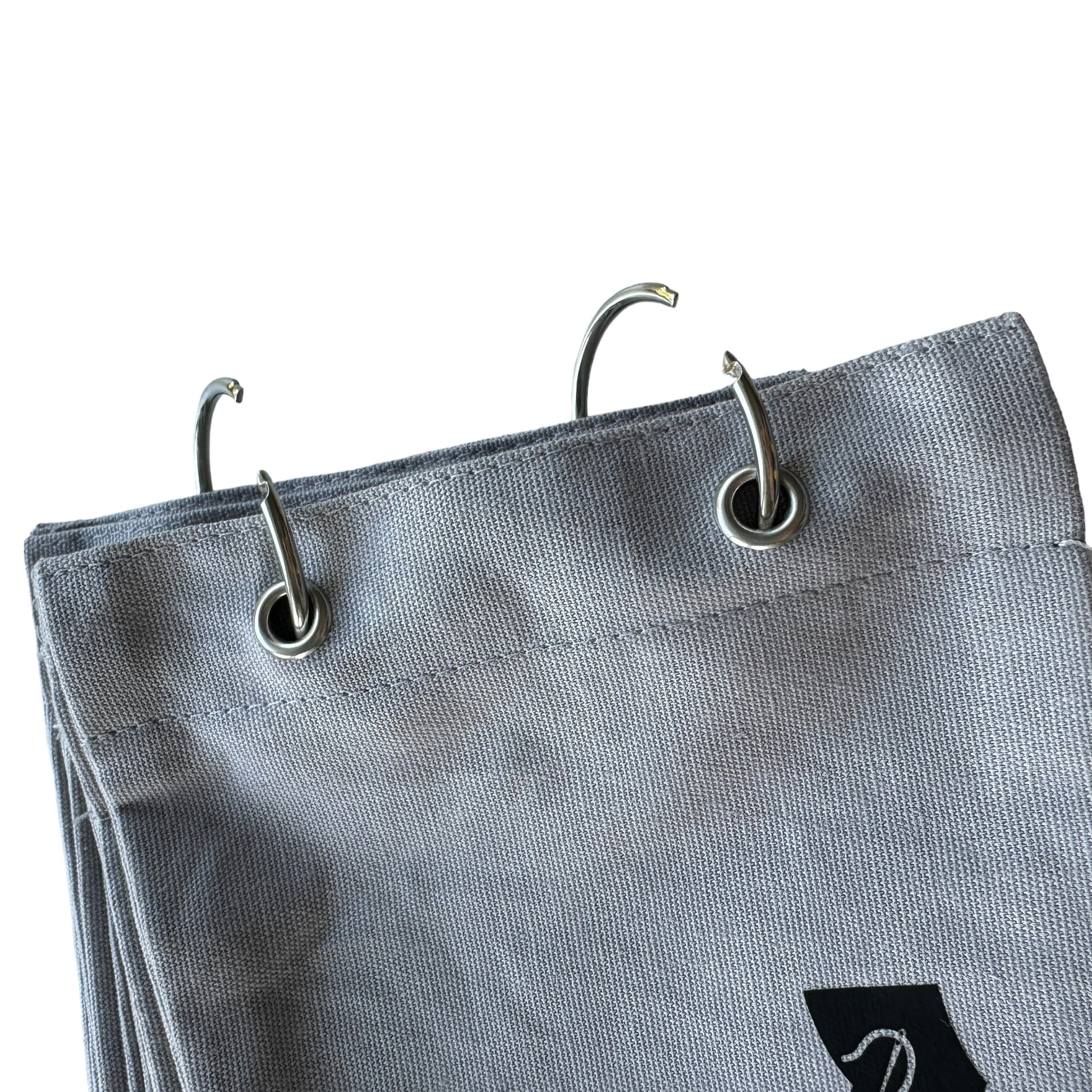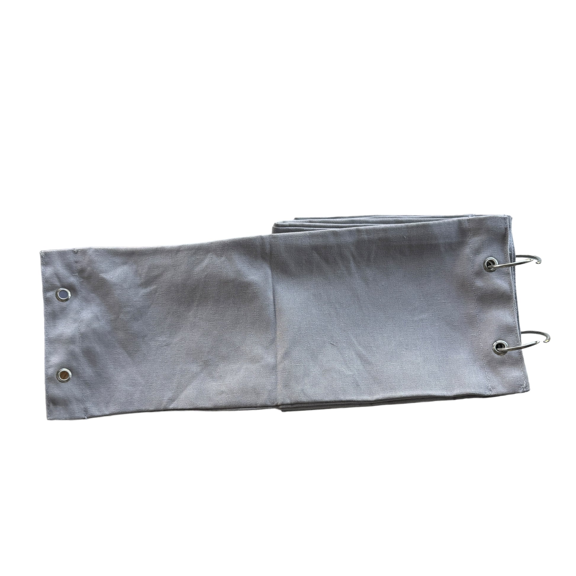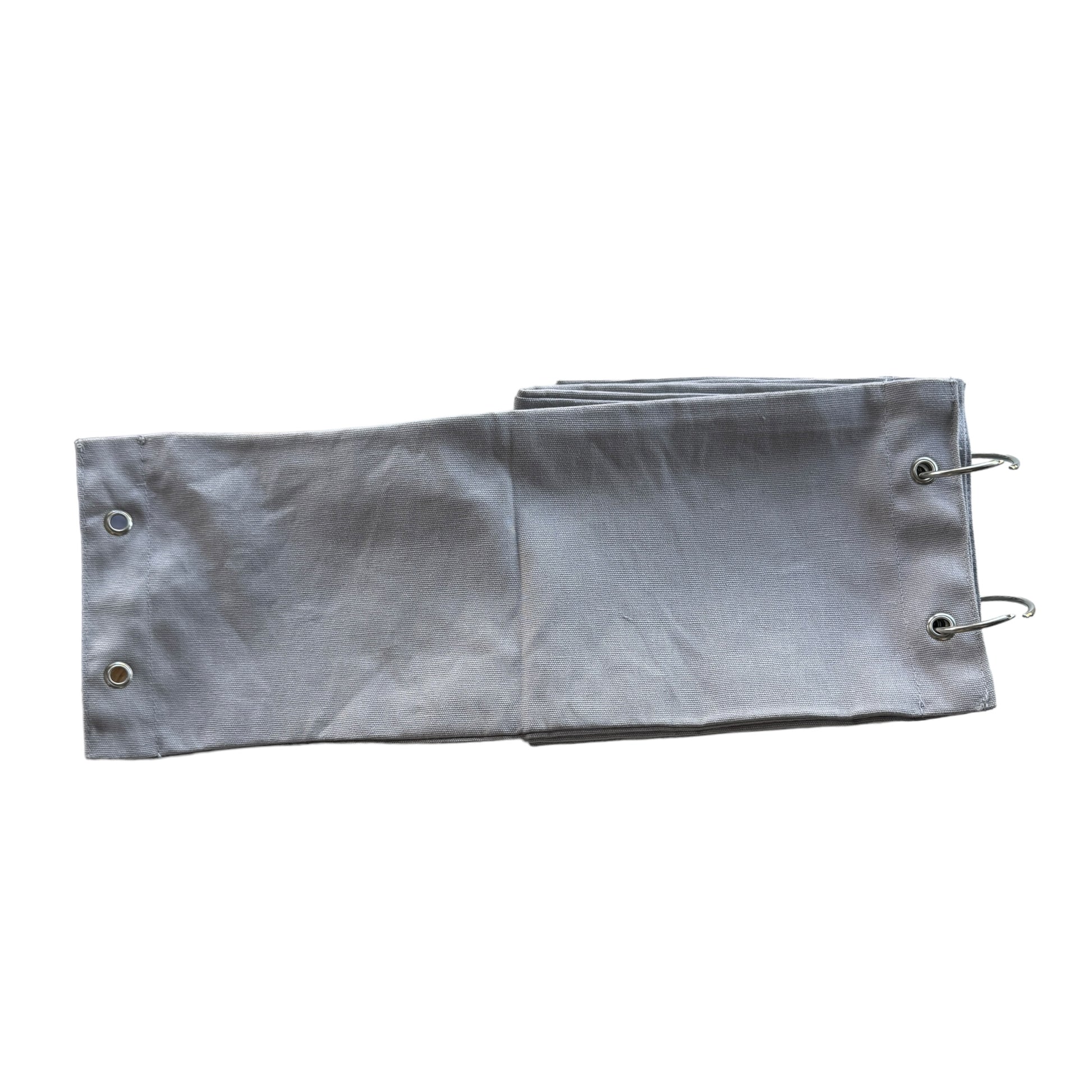 Image Description: Fabric sketchbook with a plain grey cloth cover, secured with two metal binder rings. Inside are blank fabric pages ready for embroidery, stitching, or decoration.